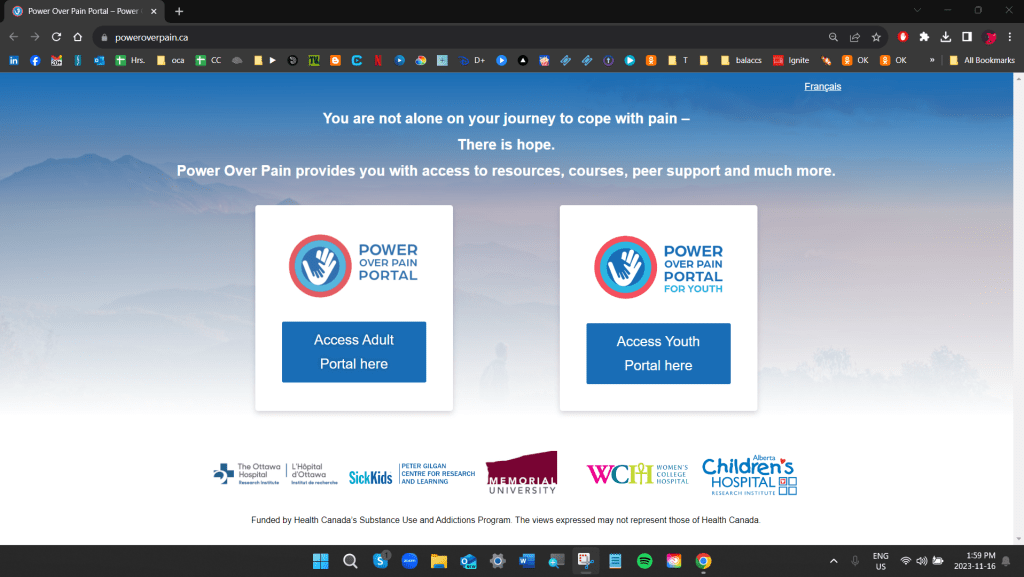 The Power Over Pain Portal is funded by Health Canada’s Substance Use and Addictions Program. All available resources have been reviewed and vetted by people living with chronic pain, informed by the Portal’s Lived Experience Advisory Community.