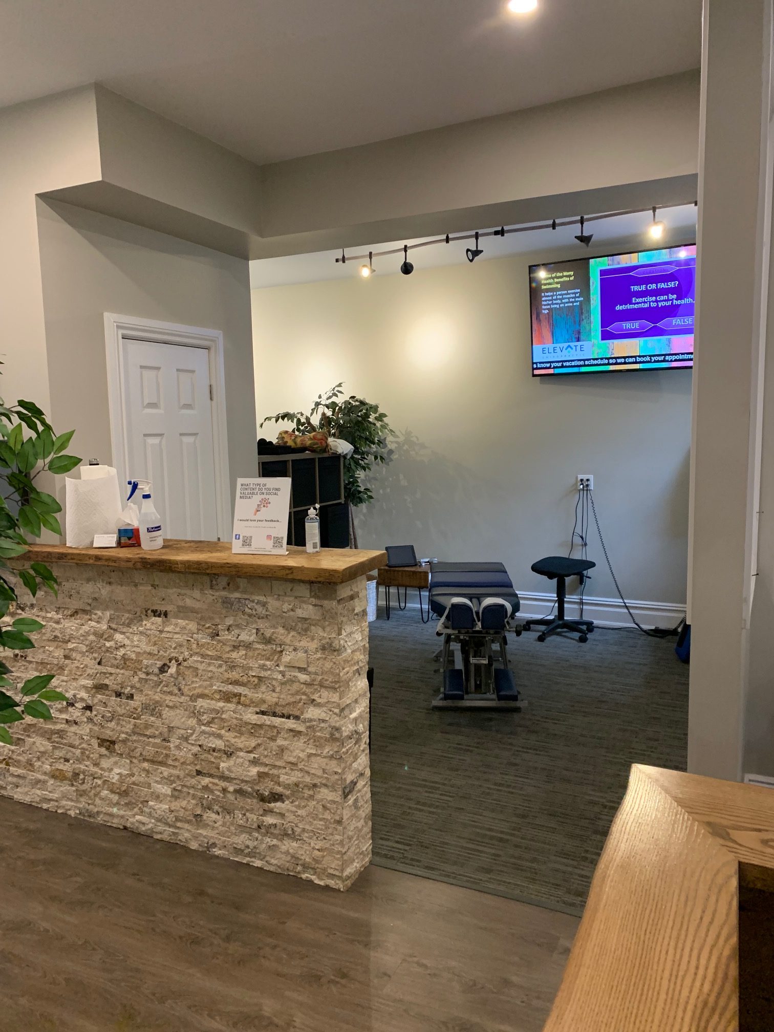 The main floor is approximately 1100 sq ft and has reception, a washroom, and 3 treatment rooms. We have plenty of parking, on site laundry, full drop Omni tables, Activator, laser therapy, Insight Subluxation Station with thermography and SEMG. Janeapp, online booking, direct billing.