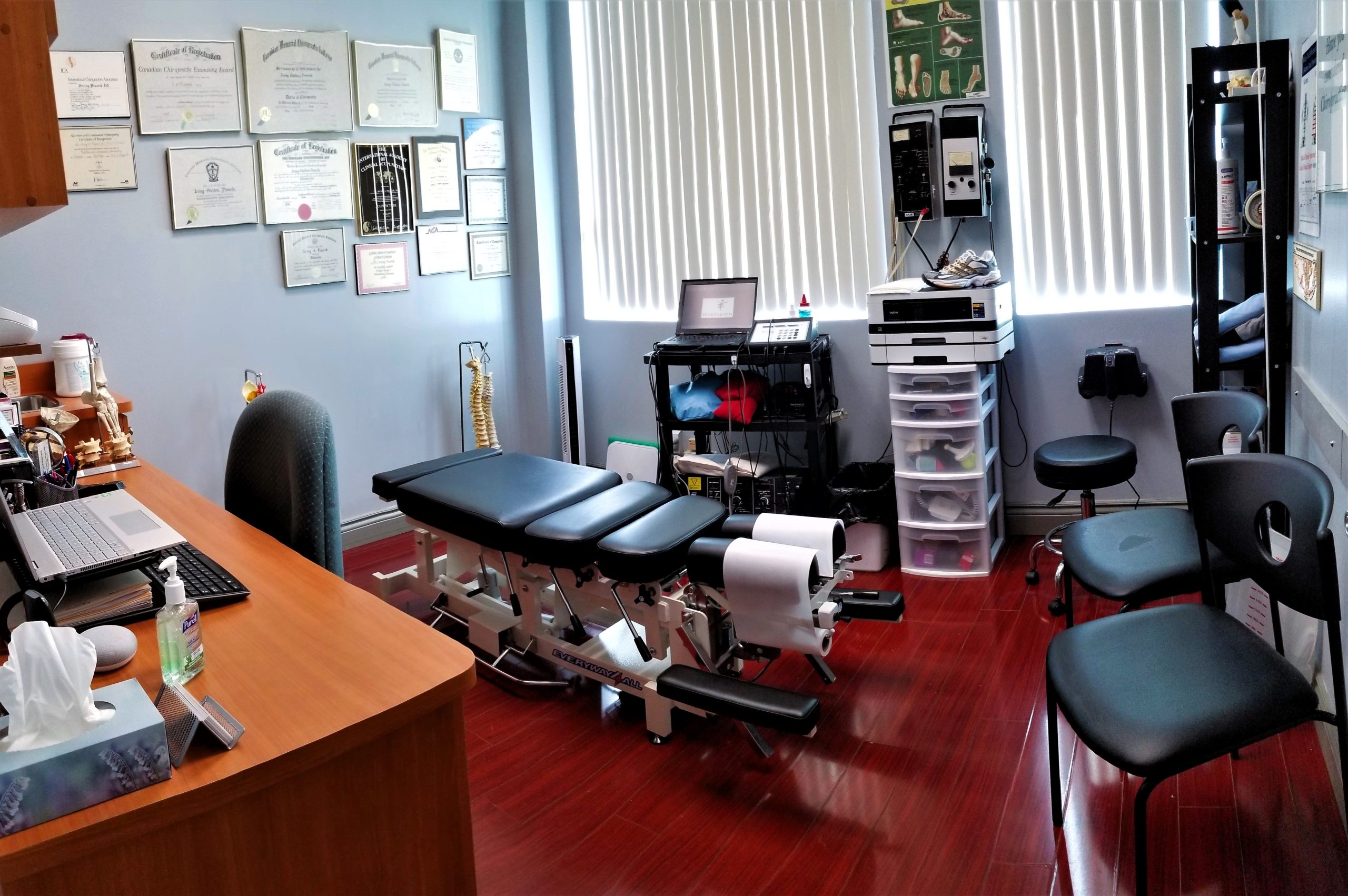 - A modern, fully equipped practice space with electric drop-piece tables, and advanced modality equipment.