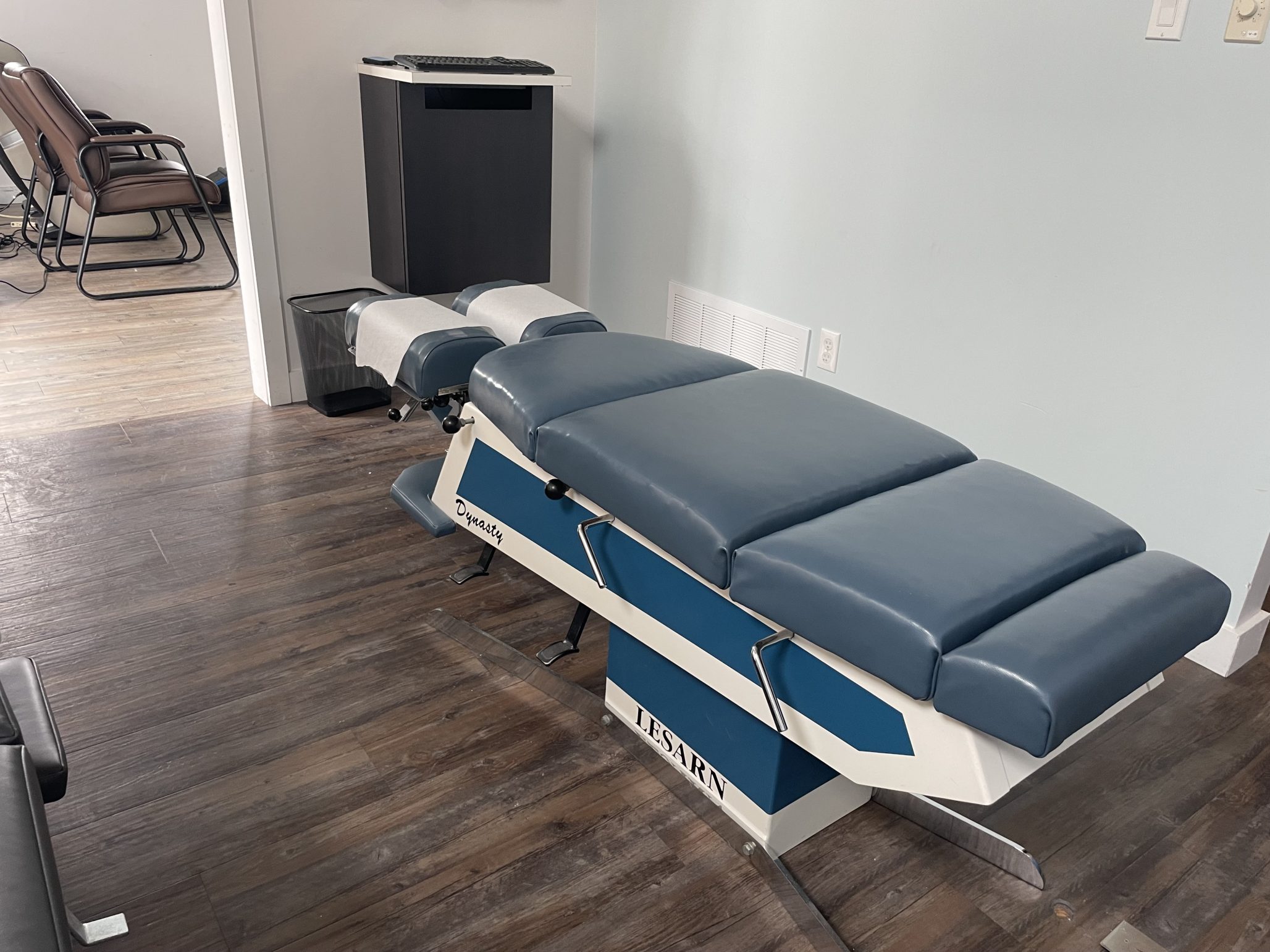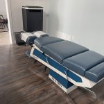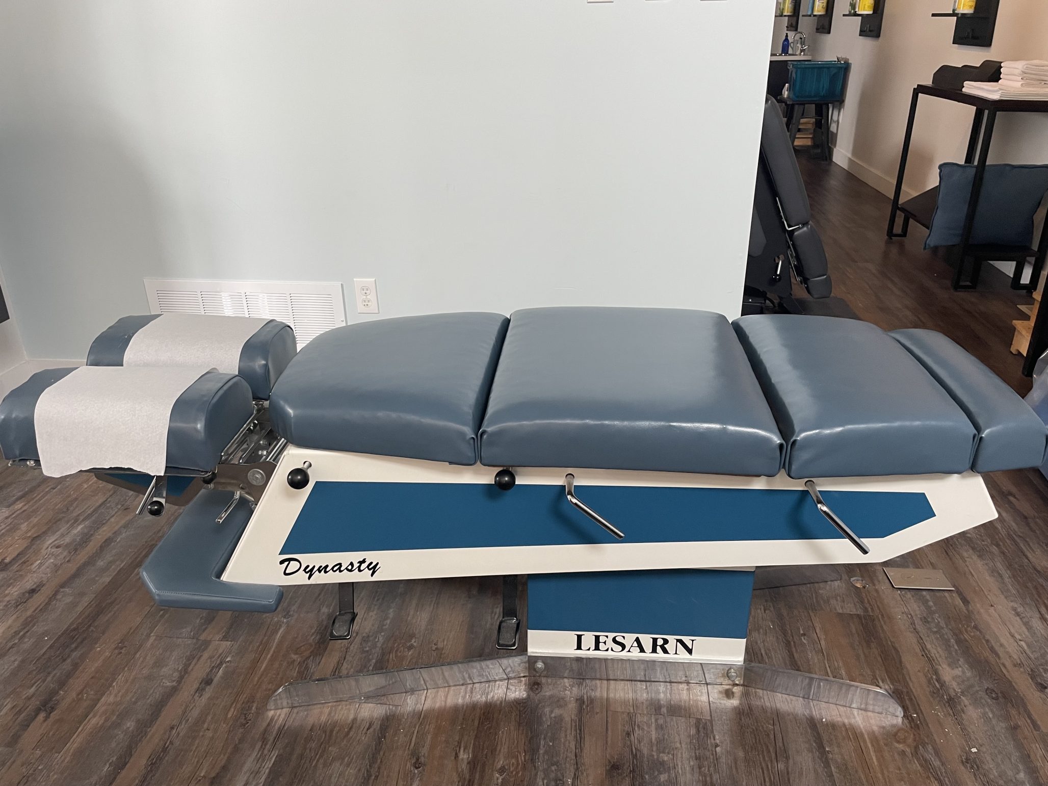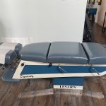 Older model stationary table fully functioning with three drops. The upholstery is in excellent shape.