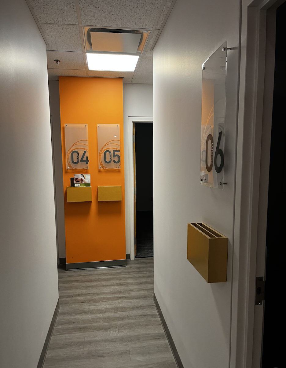 The clinic layout includes nine treatment rooms, one bathroom and one staff room, providing ample space for both existing practitioners and future growth (approx. 2100 sq feet).