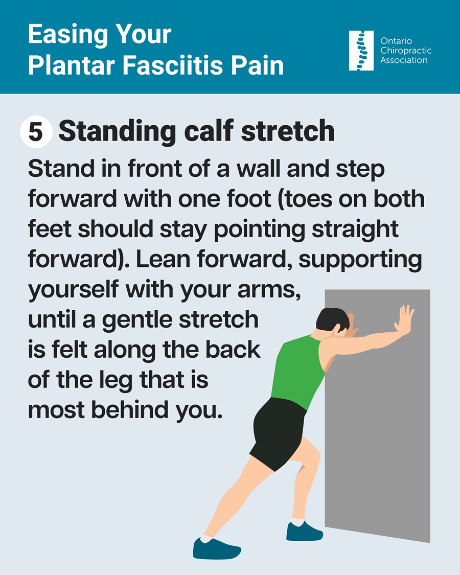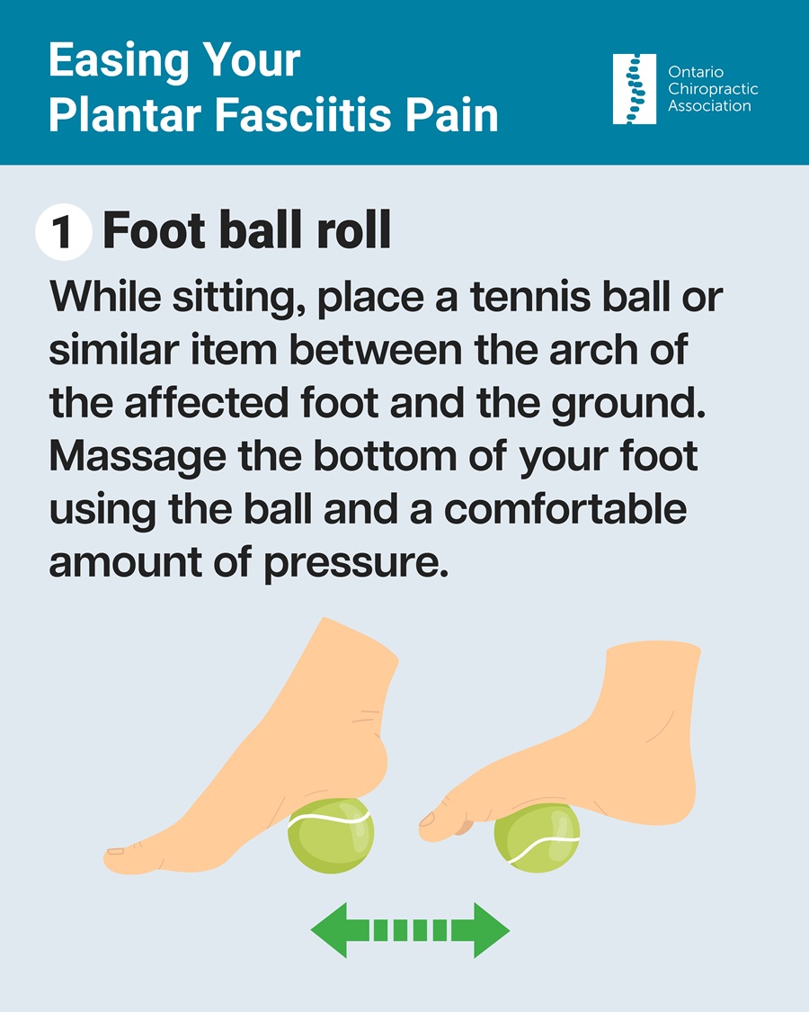 To help ease plantar fasciitis pain you can try the exercises/home strategies below, suitable for patients across multiple demographics.