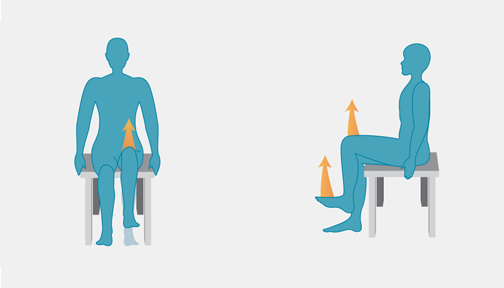 • Sit upright and away from the back of the chair. • Hold on to the sides of the chair. • Lift your left leg, with your knee bent, as far as is comfortable. Place foot down with control. • Repeat with the opposite leg. Do five lifts with each leg.